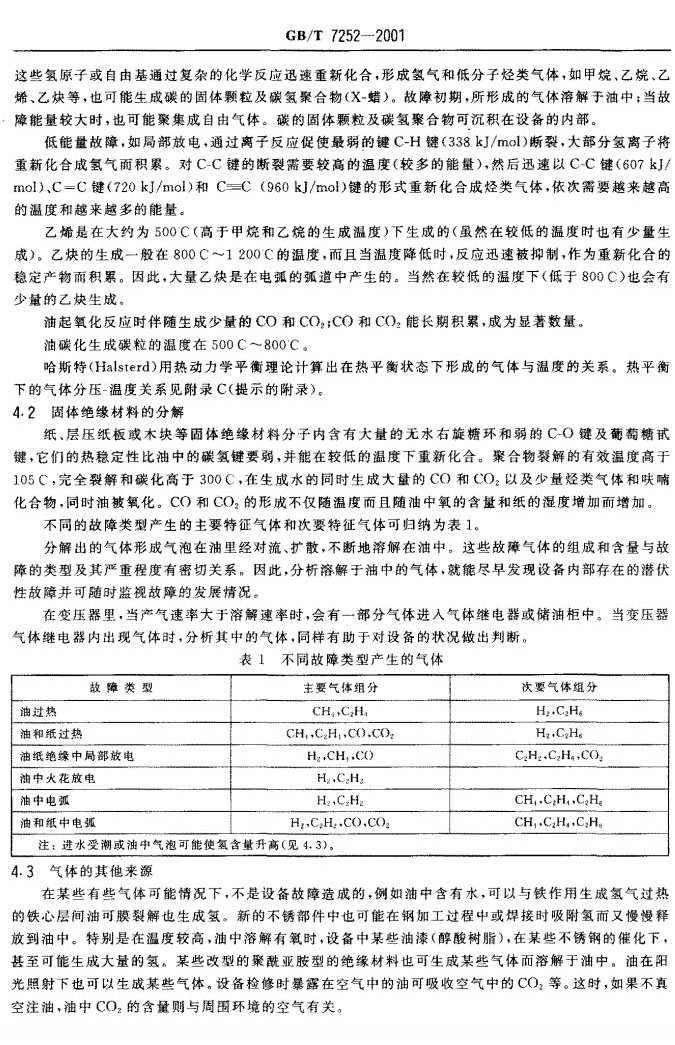 GBT 7252-2001 變壓器油中溶解氣體分析和判斷導(dǎo)則